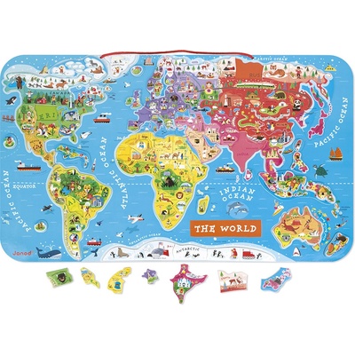 Dřevěná magnetická mapa světa - anglická, Janod Dřevěná magnetická mapa světa od firmy Janod děti naučí spoustu skvělých věcí o světě a jednotlivých zemích a vytvoří také...