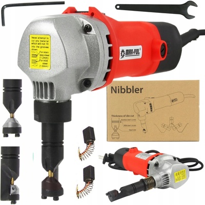 Elektrické nožnice na plech - MAR-POL M79302Technické parametre:Napájanie: 230V ~ 50hzVýkon motora: 1550WVstupný priemer: 22 mmŠírka rezu: 5 mmVnútorný polomer rezu: 45 mmVonkajší polomer rezu: 50 mmOtáčky: 2000 ot./minHmotnosť: 2,6 kg