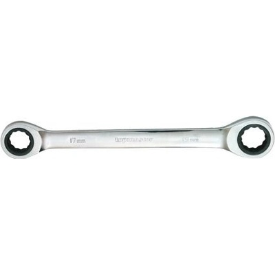 Ráčnový očkový klíč se dvěma velikostmi oček Vykováno z Cr-V oceli Ráčna se 72 zuby Poniklovaný povrch zabraňující korozi klíče Leštěné tělo Velikost: 12 x 13 mm Délka: 170 mm