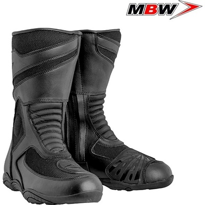 MBW Tr215 KOŽENÉ MOTO BOTY - cestovní kožené boty kombinované s textilem - podrážka z pevné gumy odolné proti mastnotám - zapínání zipem a suchým zipem na vnitřní straně boty - vnitřní zesílená podpora holeně, kotníku a paty - flexibilní panel v oblasti nártu a...