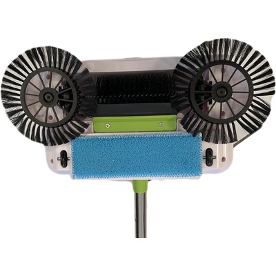 Mechanický zametač s holí je určen pro běžný úklid všech typů podlah. Délka hole 93 cm. Zametač je opatřen třemi kruhovými kartáči a dvěma bočními gumovými kartáčky. Nečistoty zůstávají v zásobníku, k