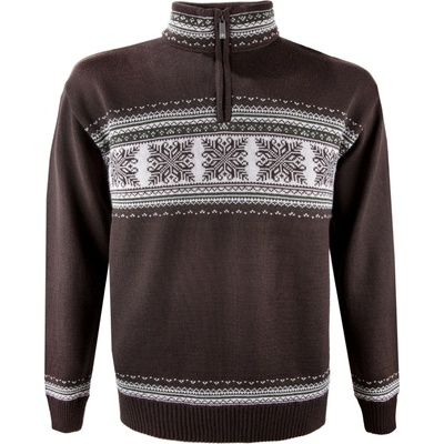 Svetr v tlumených barvách, ideální pro mlovníky přírody. Stojáček je uvnitř podložený měkkým fleecem. Přes prsa je vzor z hvězd.