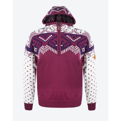 Svetr s odvážným barevným vzorem a kapucí je upletený z velmi kvalitní směsové příze. Barevný vzor doplňuje plastický úplet po stranách rukávů a uprostřed kapuce. - materiál...