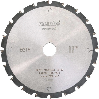 Pilový kotouč HW/CT 216x30, 20 SZ 5° záp. (628230000) Pro hrubé a středně jemné přířezy za plynulého posuvu a nízkého výkonu Dobré výsledky řezání u podélných řezů masivního...