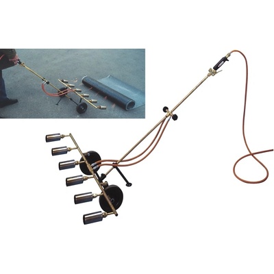 Hořák rampový Kombajn 6x25kW Meva 2270 rampový hořák - Kombajn - pro nahřívání velkých ploch a pokládání izolací, střešních krytin apod. možnost regulace udržovacího plamene a uzavření levé a pravé poloviny rampy pákový ovladač umožňuje spustit maximální výkon s...