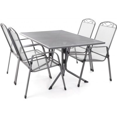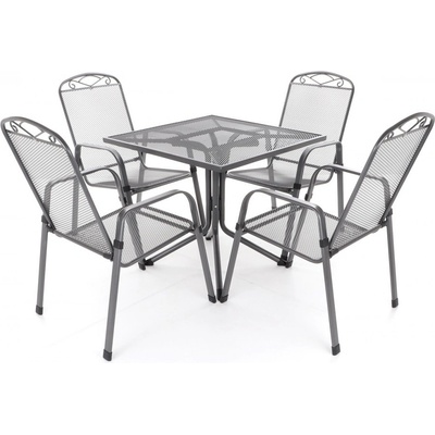 Stolová sestava ZINGST 4 Stolová sestava se skládá z: 4x kovové Křeslo ZINGST Rozměry: 95 x 73 x 57 cm Hmotnost: 6 kg 1x kovový stůl MEC-MESH 80 Rozměry: 80 x 80...