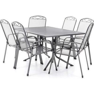 Stolová sestava ZINGST 6 Stolová sestava se skládá z: 6x kovové Křeslo ZINGST Rozměry: 95 x 73 x 57 cm Hmotnost: 6 kg 1x kovový stůl MEC-MESH 120 Rozměry: 120 x 80 x 71 cm...