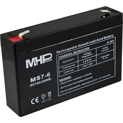 Pb akumulátor MHPower VRLA AGM 6V / 7Ah (MS7-6) CARSPA. Baterie konstrukce MHPower mají mnoho výhod, např.: více než dvojnásobná životnost ve srovnání s ostatními, nádoba je konstruována z mnohem pevnějších materiálů (jsou zde větší tlaky), je nejlépe otřesuvzdorná ze...