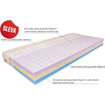 Podrobnosti o produktu mbo15_20203 100 x 200 x 22 Matrace PROMA je velmi pohodlná sedmizónová matrace s unikátním děrováním jádra. Jádro této matrace tvoří dvě vrstvy HR studené pěny gramáže 43 kg s vysokým podílem rostlinného extraktu ze soji. Rostlinný extrakt...
