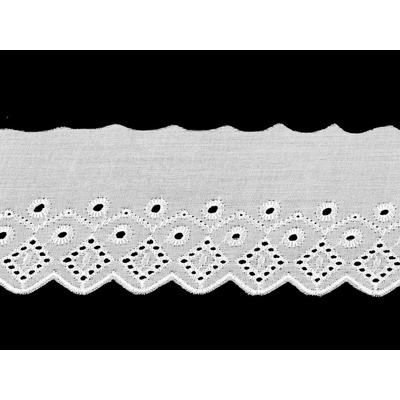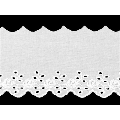 Dodejte svým oděvům i bytovému textilu jedinečný vzhled s bavlněnou madeirou. Tento kvalitní materiál s krásnou dírkovanou výšivkou je ideální pro ozdobné lemování rukávů, sukní...