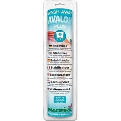 Vlizelín - Avalon PLUS - Madeira (30cm x 3m) je profesionální podklad pro vyšívání. Jedná se o voudou rozpustnou netkanou textílii. Vlizelín slouží pro stabilizaci výšivek u...
