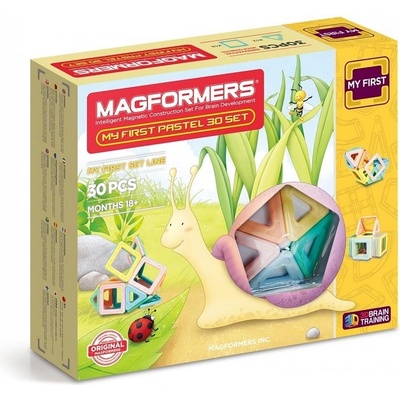 Stavebnice Můj první Pastelle 30 dílků je obdobou stavebnice Můj první Magformers 30, ale barvy jsou pastelové. Stavebnice Můj první Pastelle 30 obsahuje 30 speciálně upravených dílků: 12 trojuhelníků 18 čtverců Dílky jsou plnobarevné (bez klasického poloprůzračného...