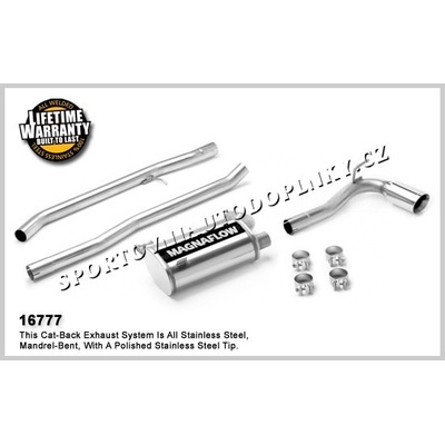 MagnaFlow výfuk 16777 Jeep Compass Limited/ Sport 2.4L 2007-10 MagnaFlow #16777 Cat-Back Street Series Vyrobeno v USA a navrženo pro ty, kteří hledají vyšší výkon a lepší hospodárnost. Výfukový systém MagnaFlow Street Series dodává hladký hluboký zvuk, který chcete a...