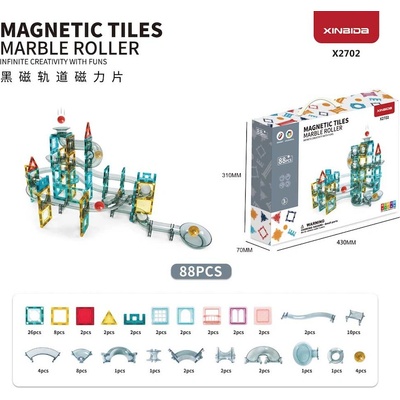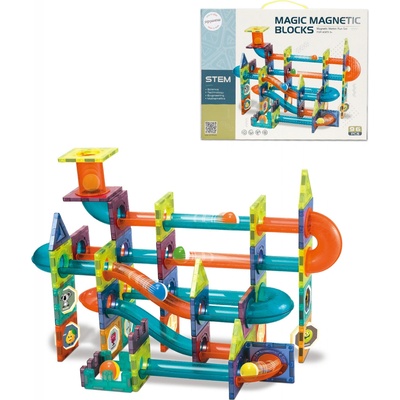 - Výrobce: Coblo - Typ: Magnetická stavebnice - kuličková dráha - Počet dílků: 100 - Obsahuje: 56 magnetických dílů, 8 dlouhých ohybů, 8 krátkých zatáček, 7 dlouhých drah, 7...