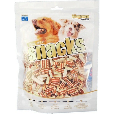 Magnum Chicken Sandwich 250g Doplňkové krmivo z kuřecího masa pro psy všech plemen jako pochoutka během dne či při výcviku. Měkké pamlsky pro psy mají neodolatelnou chuť, nezatěžují organismus a jsou tak velmi dobře stravitelné. Pamlsky ve tvaru proužků v...