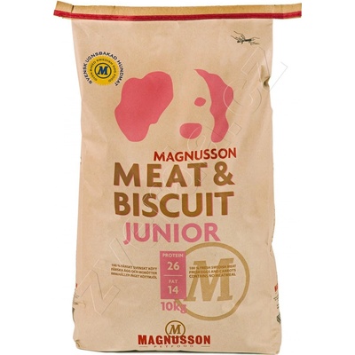 Magnusson Junior meat biscuit je kompletní krmivo pro štěňata všech plemen. Krmivo magnusson junior je vyrobeno ze 100% čerstvého masa a dalších vynikajících čerstvých surovin, Magnusson je první výrobce krmiv pro psy, který dokázal do krmiva dostat 100% podíl...