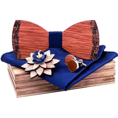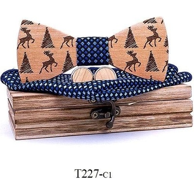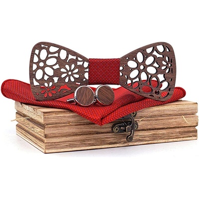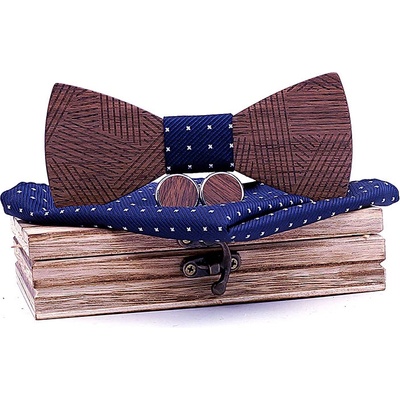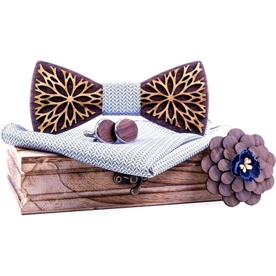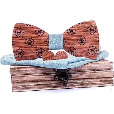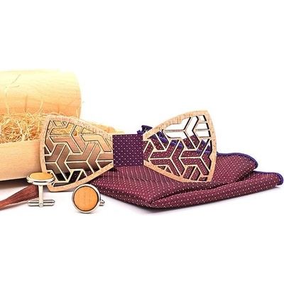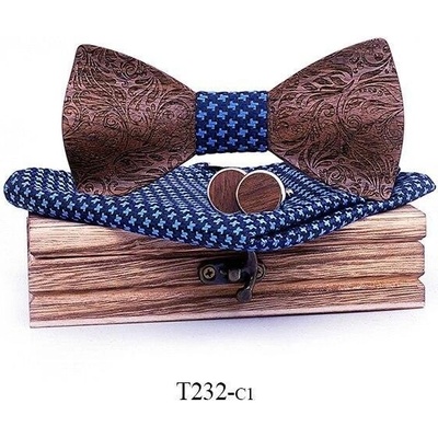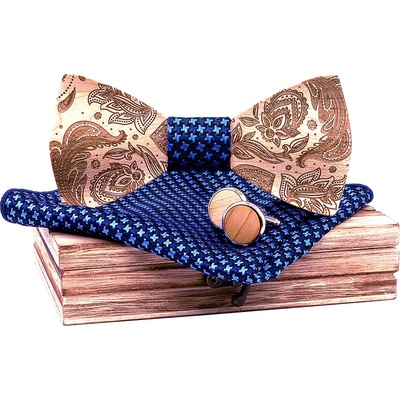 Mahoosive Dřevěný motýlek s kapesníčkem a manžetovými knoflíčky T245 MAH15-T245-C1