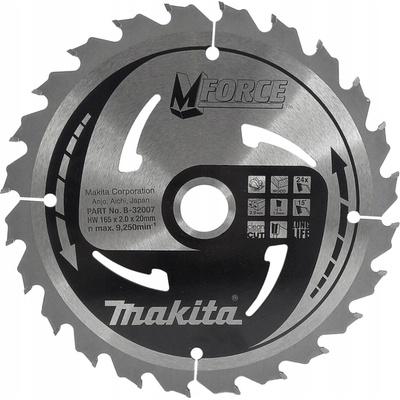 MAKITA ŘEZACÍ KOTOUČ SP6000J DSP600ZJ 165x20 24Z Mforce B-32007 Pilový kotouč určený pro ponorné pily, ruční a stacionární pily s rozměry kotouče 165 x 20 mm. Kotouč je vyroben...