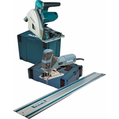 Makita meu029j Saw Set (Plunge Saw + Jigsaw) Tato sada se skládá ze dvou pily, každá v Makpac: SP6000J1 PLUNGE SEKLA PRO DISKÁLNÍ KŘEŠENÍ V MALIVNÍCH DÍVKY, DÍLNÍ KOMPOZITNÍ nebo PANELOVÉ MATERIÁLY A HLINUMU Pendulum Action skládačka 4351FCTJ se změnou čepele bez...