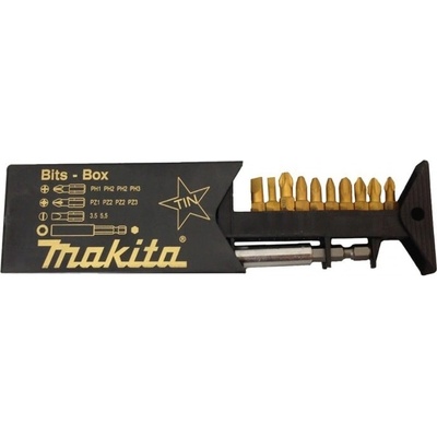 Sada bitů TIN, 11 ks. Sada obsahuje: magnetický držák, PH1, PH2 (2×), PH3, PZ1, PZ2 (2×), PZ3, bit plochý 3,5, bit plochý 5,5 Sada bitů MAKITA TiN P-49046, 11 kusů. Sada...