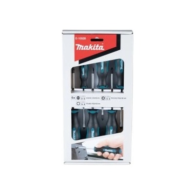 Šroubováky v této 6dílné sadě mají protiskluzovou rukojeť a magnetický hrot. Sada se skládá z těchto šroubováků: PH1x100mm PH2x100mm PZ1x80mm PZ2x100mm SL4.0x100mm ...
