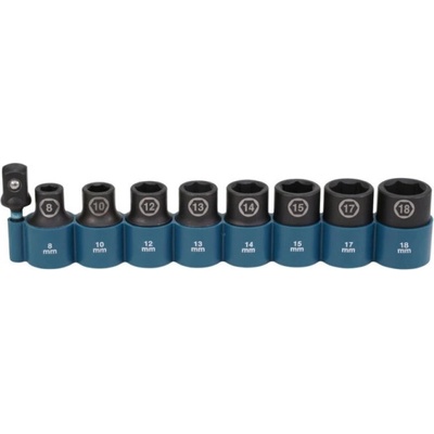 Sada nástrčkových klíčů pro rázové utahováky obsahuje 8, 10, 12, 13, 14, 15, 17, 18 mm ořechy, adaptér 1/2" čtyřhran na 1/4" šestihran. Sada nástrčkových klíčů pro rázové...