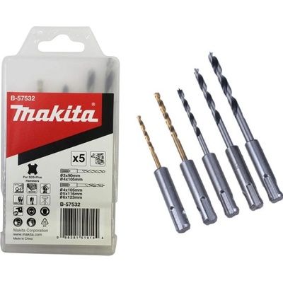 SADA VRTÁKŮ SDS-Plus DO DŘEVA A KOVU 5dílnáMAKITA B-57532 Sada vrtáků SDS-PLUS pro vrtání do kovu a dřeva. Obsahuje vrtáky HSS-TiN do kovu a vrtáky do dřeva se středící špičkou....