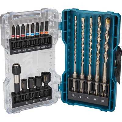 * 18dílná sada vrtáků/nástavců/šroubováků Makita s magnetickým držákem bitů pro rychlou výměnu. * V praktickém plastovém kufříku. * Tato sada se skládá z: - Vrtáků do zdiva: [5...