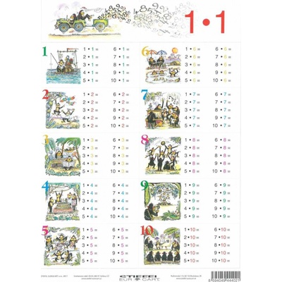 Přehledně zpracovaná malá a velká násobilka s vtipnými ilustracemi pro malé i velké počtáře. Přední strana obsahuje násobení do 100, zadní strana násobení do 200. Ilustrace od...