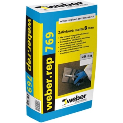 Weberrep 769 zálivková malta 8 mm Cementová zálivková malta 8 mm. Jednosložková suchá směs pro výrobu zálivkové malty určená k zalévání vysoce namáhaných stavebních...