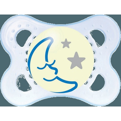 Dudlík noční 6+ 1 ks Jemný pro pokožku - přizpůspbený věku dítěte - ortodontický tvar savičky - atraktivní design - terč ve tmě mírně svítí - snadné použití MAM dudlík noční NIGHT je vyvinut pro noční použití. Knoflík dudlíku ve tmě svítí, takže ho rodiče i děti...