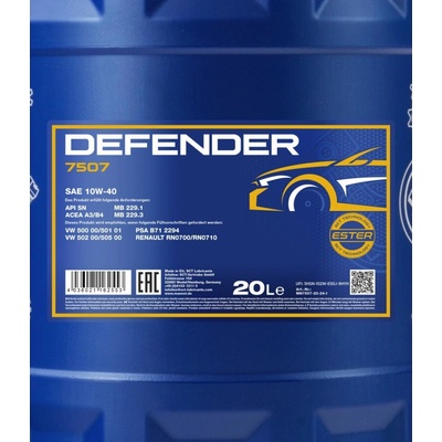MANNOL 7507 DEFENDER 10W40 1L SL/CF, A3/B3, VW 501.01/505.00 MB229.1 Inovativní univerzální motorový olej s obsahem esterů na hydrosyntetickém základě pro benzínové a naftové motory nových i "starých" značek a s velkým kilometrovým nájezdem. Vyvinuto na základě...