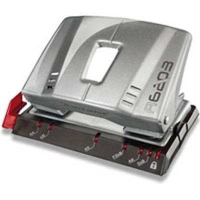 Celokovová děrovačka s přehledně značeným posuvným příložníkem. Rychlé děrování pomocí indikátoru rozteče kroužkové vazby. Rozteč mezi otvory 8 cm. Snadné vysypávání zásobníku. Na 20 listů. Barva metal. šedá