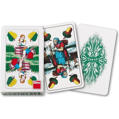 Klasické dvouhlavé karty z kvalitního karetního papíru, se kterými si zahrajete nespočet známých her - Mariáš, Válku, Prší... Zabaleno v pevné kartonové krabičce víko/dno....
