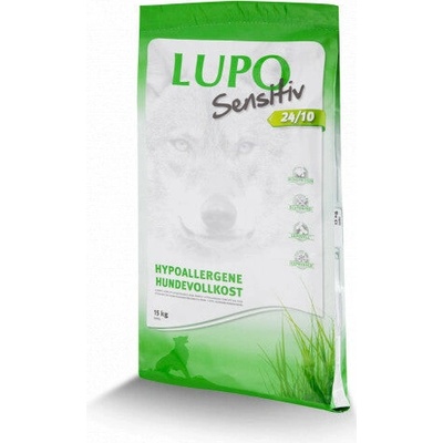 LUPO Sensitiv 24/10 15kg Krmivo pro psy Specifikace produktu - kompletní krmivo pro psy - lisované za studena - vhodné pro citlivé psy - s kuřecím masem - obsahuje bylinky, plody a semena - obsahuje semena ostropestřce mariánského, smetánky lékařské, léčivou...