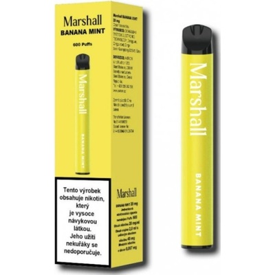 Marshall Banana Mint Chuť zralého banánu s mátou. Marshall je stylová jednorázová e-cigareta pro ty, kteří hledají bohatý a přesto jemný zážitek z každého potažení, plné chuti...