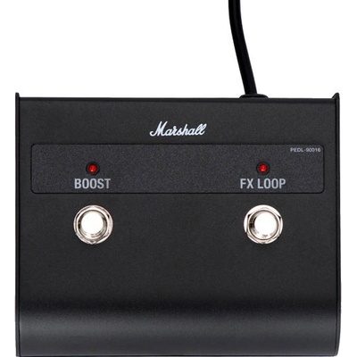 Nožní přepínač Marshall PEDL-90016 je footswitch k aparátům Marshall ze série Origin. První switch aktivuje gain boost, druhý funguje jako bypass efektové smyčky.
