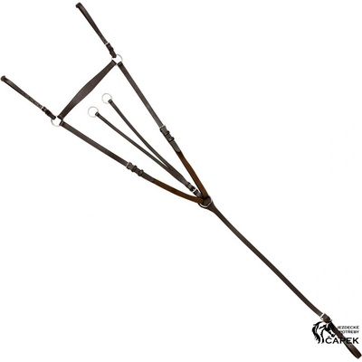 Thiedemann kombinace martingalu a otěží s karabinami. Vyrobená z velmi kvalitní telecí kůže. Otěže jsou vybaveny D kroužky a koženými zarážkami. Větve martingalové vidlice se...