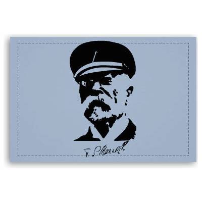 Podobizna prvního prezidenta TG Masaryka s podpisem pro každého hrdého Čecha.. Digitální potisk na polyesterové plátno vypnuté na kvalitní dřevěný rám. Přibližně 3 cm fotografie...