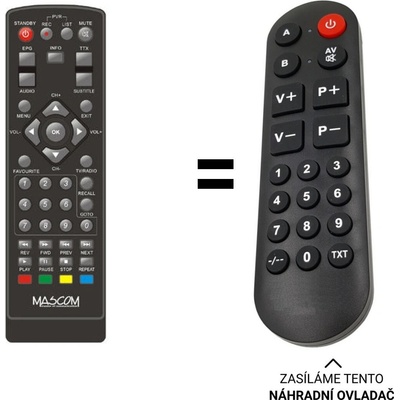Náhradní dálkový ovladač MASCOM MC650T HD, MC750T2 HD - 100procent náhrada 1:1 za originální dálkový ovladač. Dálkový ovladač je určen pro tyto modely MASCOM: MC-650, MC-750 T2 HD, MC650, MC650THD, MC750 T2 HD. (Nemusí zde být uvedeny úplně všechny kompatibilní modely....