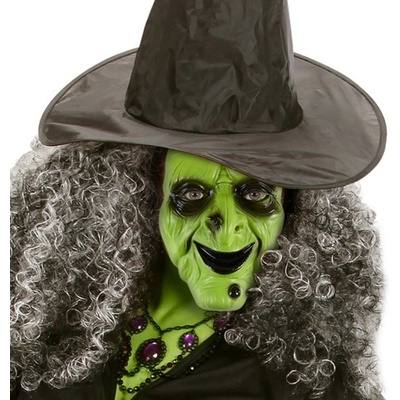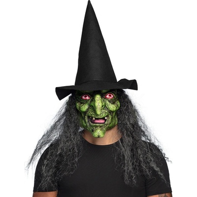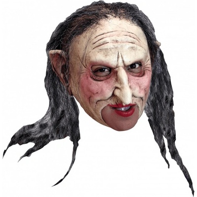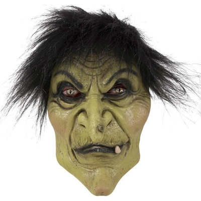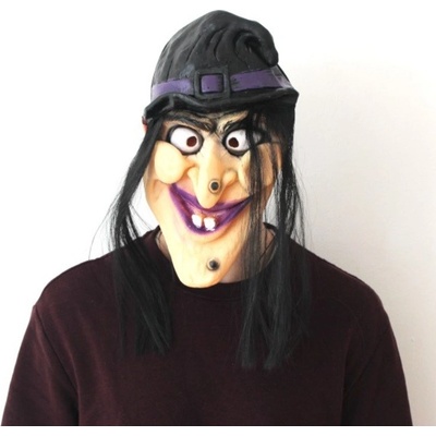 Latexová obličejová maska čarodějnice s černými vlasy. Čarodějnice má na bradě i na nose černou bradavici. Ideální maska na Halloweenský večírek, čarodějnickou oslavu nebo na...