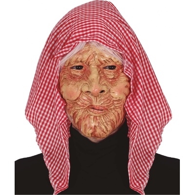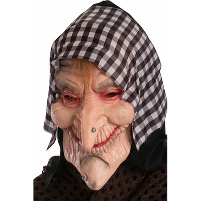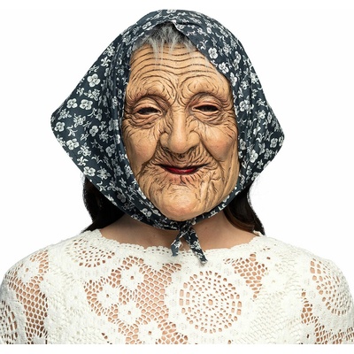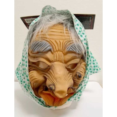 Latexová maska na obličej Stará žena s šátkem Veselá maska, pomocí které si snadno sestavíte originální a vtipný kostým na karneval nebo čarodějnice. Realistická latexová maska...