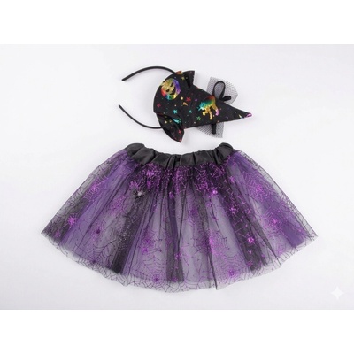 Bezva sada pro všechny malé parádnice čarodějnice! Sukýnka má černou spodničku, překrytou tylem s potiskem stříbrných hvězdiček. Set je doplněn o čelenku s kloboučkem, který...