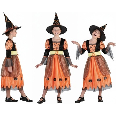 Rappa Dětský kostým Oranžová čarodějnice s kloboukem 117 - 128 cm Čarodějnice se stala námětem kostýmu, se kterým se děti mohou proměnit v jinou bytost. Ať při hraní v...