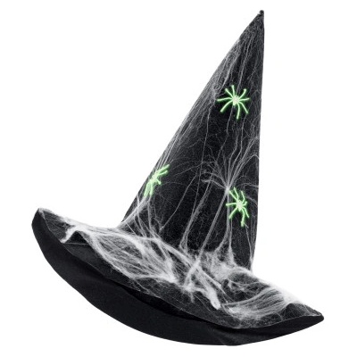 Veselý čarodějnický klobouk je skvělým doplňkem na karneval! Klobouk černé barvy je zdoben fialovými, třpytivými pavučinami. Staň se hvězdou díky tomuto klobouku! Věk: od 3...