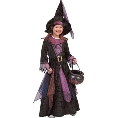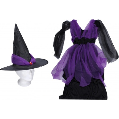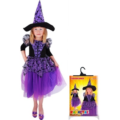 Nádherný kostým čarodějnice pro malé slečny ve věku 6-8 let. Tento kostým zaujme fialovými šaty s černým vzorem a stylovým kloboukem. Kouzelný design Fialové šaty s černým...