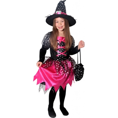Magický karnevalový kostým pro malé čarodějnice! Kostým černo-růžové barvy ve velikosti S je určen pro holčičky ve věkovém rozmezí 4-6 let (105-116 cm). Šaty jsou dekorovány...
