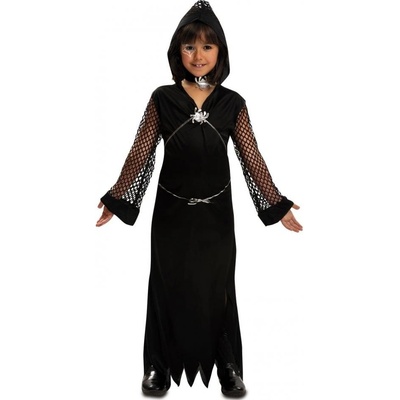 Šaty na karneval - Černá vdova. Velikost: Střední (120 - 130 cm). Kostým je vhodný pro děti ve věku 5-9 let. Obsahuje: - šaty - pásek - límec Neobsahuje: - boty.