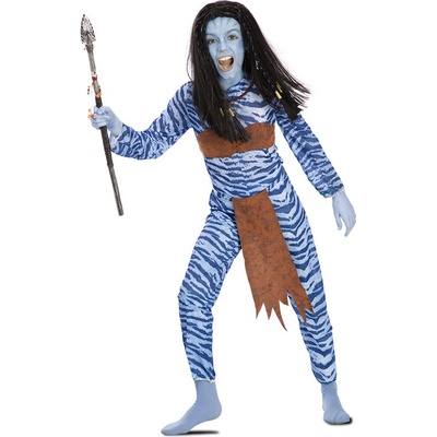 Kostým - Avatar obsahuje: kombinézu šerpu zástěrku náramky. Velikosti: 7-9 let - výška 122-138 cm - prsa 70 cm - pas 65 cm - boky 76 cm 10-12 let - výška 139-155 cm - prsa 80 cm - pas 70 cm - boky 85 cm.