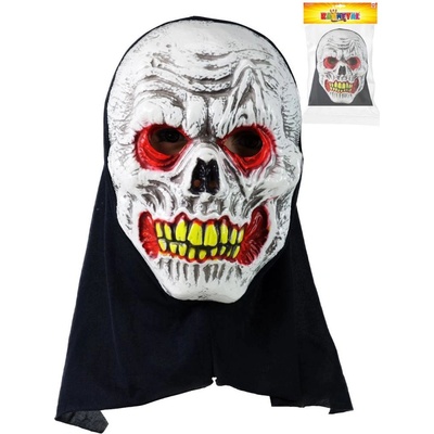\nDěsivá maska na obličej s motivem kostlivce je parádním doplňkem na karnevalový večírek nebo Halloween párty. Plastová maska je doplněna textilním šátkem přes hlavu. Věk: 14+\n